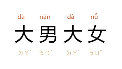 注音ㄉㄚˋ ㄋㄢˊ ㄉㄚˋ ㄋㄩˇ