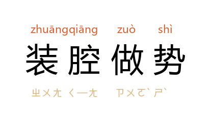 腔:腔调;势:姿态。装出一种腔调,摆出一种姿态,故意做作想引人注意或吓唬人。