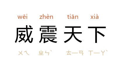 威:威势或威望。震:震动。威势或威望震动天下。亦作“威振天下”。