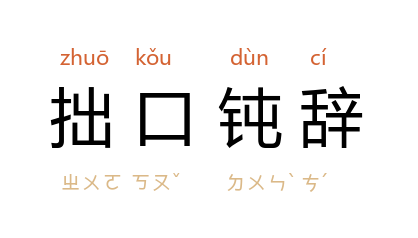 拙:拙笨;钝:迟钝,笨拙。粗嘴巴,笨言辞。指不善于言辞。