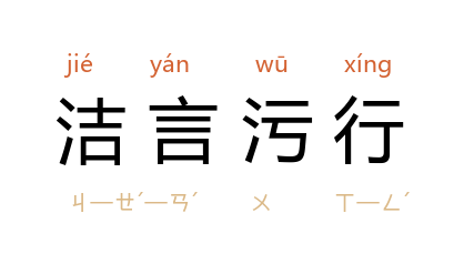 洁:干净;污:污秽。洁净的言辞,污秽的行为。形容言行相违,表里不一