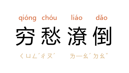 穷愁:穷困愁伤。潦倒:颓丧,失意。形容贫寒困窘,愁苦失意的样子。亦作“羁愁潦倒”、“潦倒穷愁”。