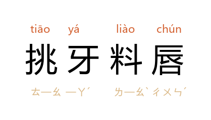 出处元·无名氏《举案齐眉》第二折:“又不是挑牙料唇,只待要寻争觅衅。”