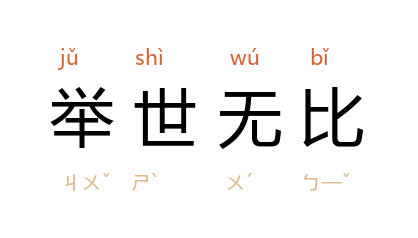 举:全,皆;举世:全世界。整个人世间没有比类的。形容稀有少见或无与伦比。