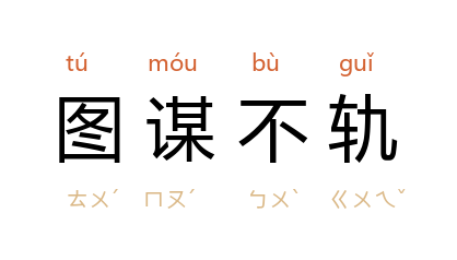 谋划超出常规或法度的事。图:谋;图谋:暗中谋划;轨:法度;准则。