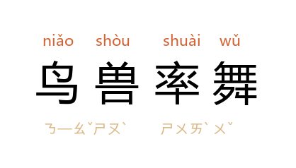 率:一起。飞鸟走兽一齐婆娑起舞。形容政治清明,鸟兽也受到感化。