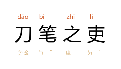刀笔:古时在竹简上用刀削改字。指代办文书的小吏。