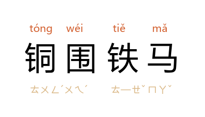 出处梁启超《意大利建国三杰传》:“奔突飘忽于铜围铁马之中,为意大利国民一天然之陆军学校。”