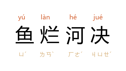 鱼肉腐烂,黄河溃决。比喻因自身原因溃败灭亡而不可挽救。语出《史记·秦始皇本纪论》附录汉班固曰:“河决不可复壅,鱼烂不可复全。”