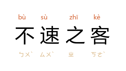 出处《周易 需》:“有不速之客三人来,敬之终吉。”孔颖达疏:“速,召也。不须召唤之客有三人自来。”