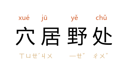 居住在山洞里;生活在原野上。形容人类远古时期原始的生活状态。穴:山洞;处:居住。