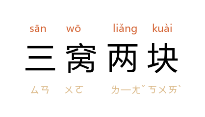 拼音sān wō liǎng kuài