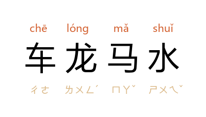 注音ㄔㄜ ㄌㄨㄥˊ ㄇㄚˇ ㄕㄨㄟˇ