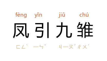 《晋书·穆帝纪》:“(升平四年)二月,凤凰将九雏见于丰城。”后以“凤引九雏”为天下太平、社会繁荣的吉兆。