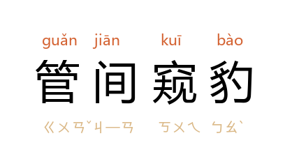 窥:从小孔看。从竹管的小孔中看豹,只看到豹身上的一块斑纹。比喻只看到事物的一部分。