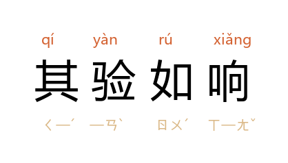 验:效果;响:回声。很快就可以看到效果。