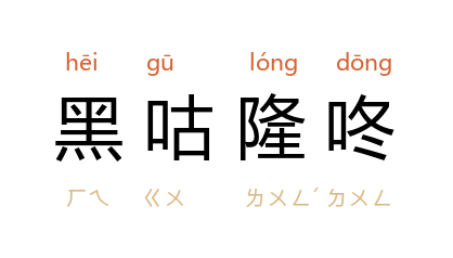 注音ㄏㄟ ㄍㄨ ㄌㄨㄥˊ ㄉㄨㄥ
