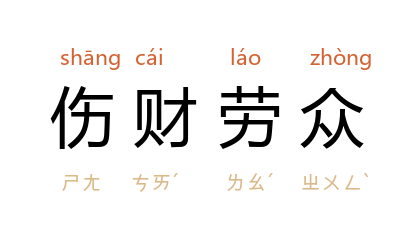 伤:耗费;劳:病。既使人劳苦,又浪费钱财。