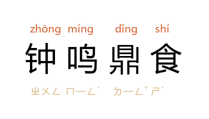 击钟奏乐列鼎而食。形容生活豪华、排场。钟鸣:吃饭时敲钟;鼎食:列鼎而食。