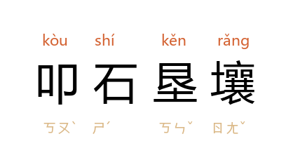 叩:敲打;垦:开垦。敲石挖土。指破土动工。