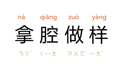 出处清·李绿园《歧路灯》第11回:“这赵大娘,才三十四五年纪,拿腔做样,也都为了个妇人礼儿。”