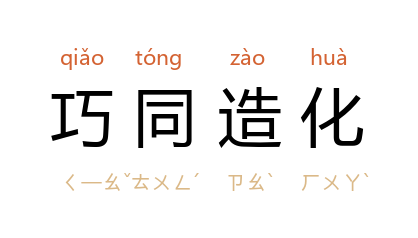巧:技巧,技艺;同:一样;造化:指宇宙的造物能力。形容人的能力很大,可与宇宙的造物能力相比。