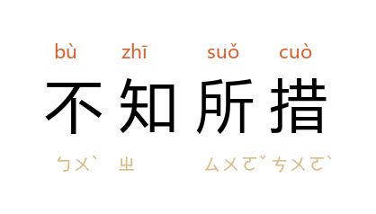 措:安置;处理。不知道怎么办才好。形容受窘或发慌的状态。也作“莫知所措”、“未知所措”。