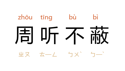 周听:广泛听取;蔽:蒙蔽。广泛地听取意见就不会受蒙蔽。