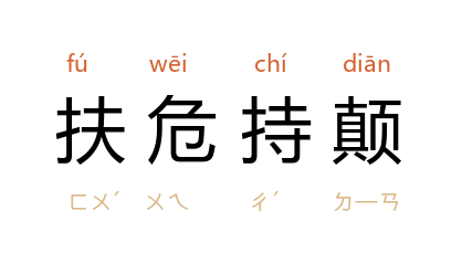 扶:帮助;持:握,把握;颠:倒,倾倒。指挽回处于危难中的国家或人。