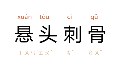 悬:吊挂。把头挂在屋梁上面,用锥刺自己的大腿骨。形容刻苦学习。