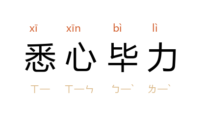悉心:尽心;毕力:尽力。竭尽智慧和力量。
