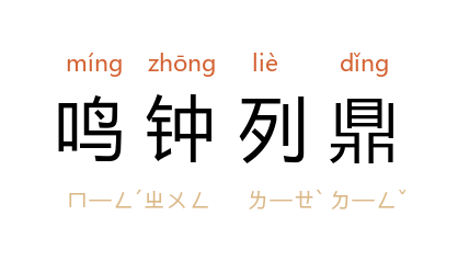 汉张衡《西京赋》:“击钟鼎食,连骑相过。”钟,打击乐器,泛指一般乐器;鼎,盛物食器。谓用食时身边响着乐器,眼前列着鼎器,后因用“鸣钟列鼎”或“鸣钟食鼎”形容古代贵族高官生活的豪奢。