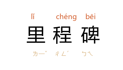 路旁标志里数的碑。比喻在历史进程中可作为标志的重大事件。