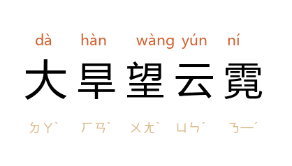 云霓:下雨的征兆。好象大旱的时候盼望寸水一样。比喻渴望解除困境。