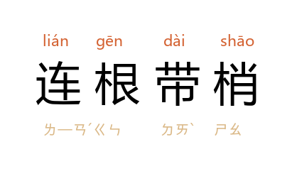 出处周立波《暴风骤雨》第二部:“萧队长笑着,对于这连根带梢、清清楚楚的说法,他最喜欢。”