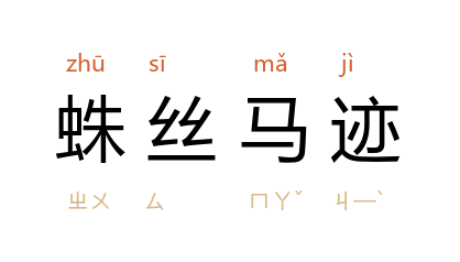 蜘蛛丝;马蹄痕。比喻隐约可寻的线索。蛛丝:蜘蛛丝;马迹:马蹄印。