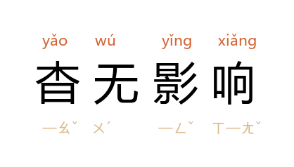 出处清·西周生《醒世姻缘传》第32回:“晁夫人起先等那官府有甚赈济的良方,杳无影响;又等那乡宦富室有什么捐输,又绝无音信。”