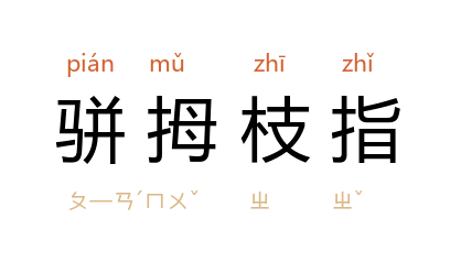 骈母:脚上的拇指与第二趾合成一趾;枝指:手上大拇指帝多生一指。比喻多余的、无用的东西。