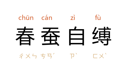 蚕:昆虫名;缚:缠束。像蚕作茧自缚。比喻自己束缚自己。