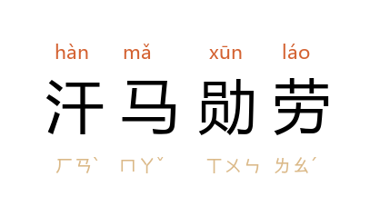 汗马:战马奔驰出汗。指在战场上建立战功。现指对事业的辛勤贡献。