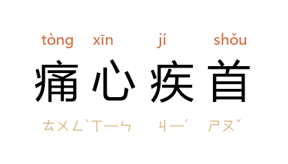 伤心而且头痛。形容伤心痛恨到了极点。疾首:头痛。