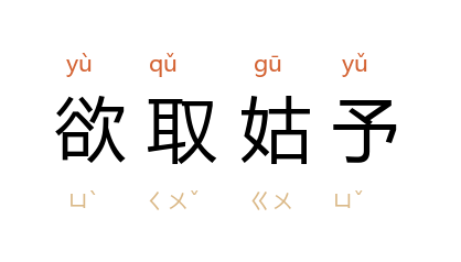 姑:暂且;与:给与。要想夺取他些什么,得暂且先给他些什么。指先付出代价以诱使对方放松警惕,然后找机会夺取。