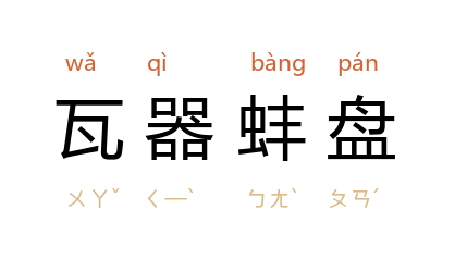 注音ㄨㄚˇ ㄑ一ˋ ㄅㄤˋ ㄆㄢˊ