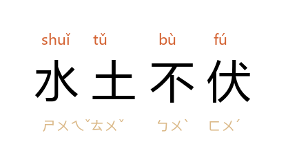 水土:指地方,引申为自然环境。对于一个地方的气候条件或饮食习惯不能适应。