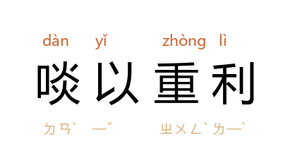 啖:吃,引诱;重:大、厚;利:利益、好处。用优厚的利益和好处引诱或收买人。