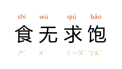 出处春秋·鲁·孔丘《论语·学而》:“君子食无求饱,居无求安。”