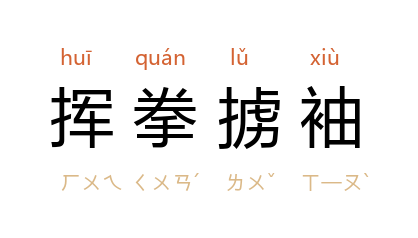 出处清·文康《儿女英雄传》第40回:“挥拳掳袖的才要说他那个主意,忽然又道:‘你等等儿。’”