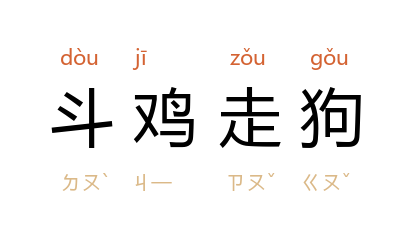 斗:使相斗;走狗:唆使狗跑。做公鸡打架、使狗赛跑的游戏。指旧时纨绔子弟、游手好闲的人的无耻游戏。