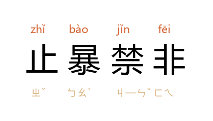 止、禁:罅;暴、非:指种种坏事。制止种种坏事。