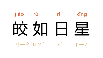 皎:洁折光亮。像太阳、星星一样洁白光亮。形容十分明显。